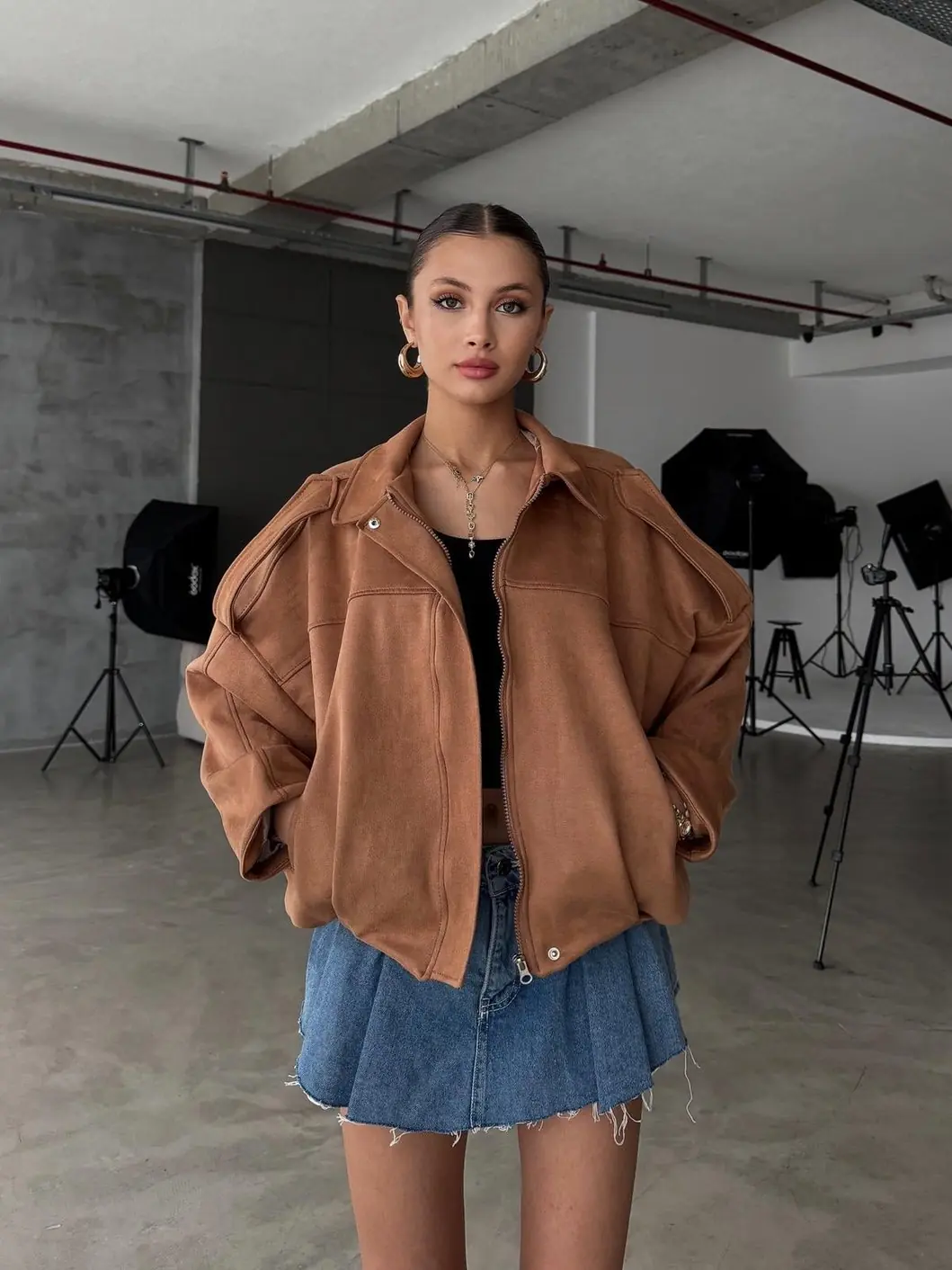 Ayakkabı ve aksesuar seçiminde ise rahatlık ve stil dengesi ön planda olmalıdır. Spor ayakkabılar, sneakerlar veya düşük topuklu botlar, bomber ceketle günlük şıklığı tamamlar. Çanta olarak ise çapraz askılı, küçük boy veya sırt çantaları tercih edilebilir; böylece pratiklik ve şıklık bir arada olur. Aksesuar seçiminde minimal takılar, ince zincir kolyeler ve sade yüzükler ön plana çıkabilir. Gözlük ve şapka gibi tamamlayıcı parçalar da kombine hareketlilik katarak stilinizi güçlendirir.