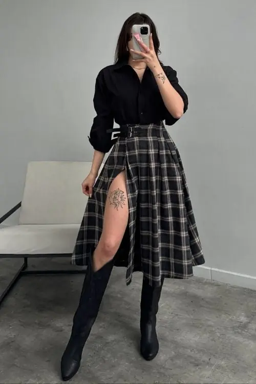 Resmi davetlerde tercih edilen ince işçilikli midi fırfırlı etek modelleri, zarif bluzlar ve ince topuklu stilettolarla birleştiğinde güçlü ama sade bir şıklık ortaya çıkar. Metalik clutch çantalar ve minimal detaylarla tamamlanan bu görünüm, abartıdan uzak ama etkileyici bir duruş sunar. Profesyonel iş ortamlarında ise klasik siyah midi etek modelleri beyaz gömlekler ve keskin hatlı blazerlarla mükemmel şekilde bütünleşebilir. Topuklu ayakkabılar ve kaliteli deri tote çantalarla tamamlanan bu kombinler, hem prestij hem de işlevselliği dengeler. Bu sayede midi etek kombinleri, her ortamda zarafetin ve şıklığın vazgeçilmez simgesi haline dönüşür.