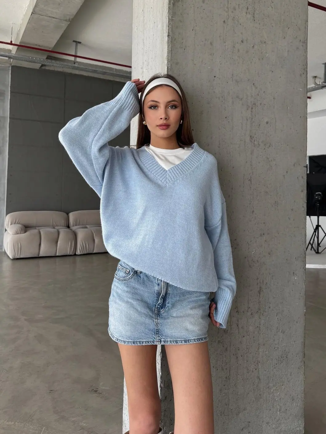 V yaka oversize kazak, hem şıklığı hem rahatlığı bir arada sunar. Bu kazak modeli, farklı vücut tiplerine uyum sağlar ve günlük stilin vazgeçilmezlerinden olur. V yaka kazak, boyun ve omuzları zarif gösterirken, oversize kesim genişlik ve hareket özgürlüğü verir. Hem ince hem dolgun yapıya sahip kişiler rahatlıkla tercih edebilir. Ayrıca, mevsim geçişlerinde ideal bir seçimdir. Farklı kumaş ve renk seçenekleriyle pek çok kombine uyum sağlar. Bu nedenle, modayı takip edenlerin ve konforlu giyinmek isteyenlerin favori parçalarından biridir.