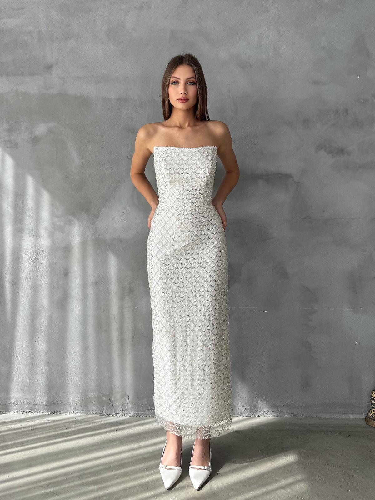 Cariyn Straplez Taş Detay Beyaz Abiye