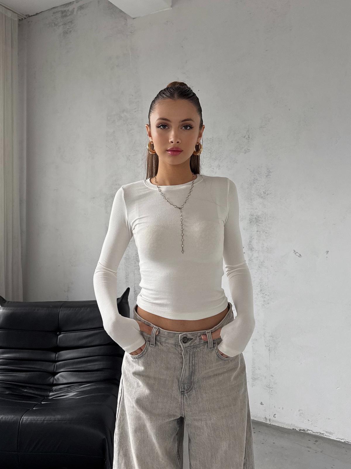 Fable Beyaz Parmak Geçmeli Oysh Basic Bluz