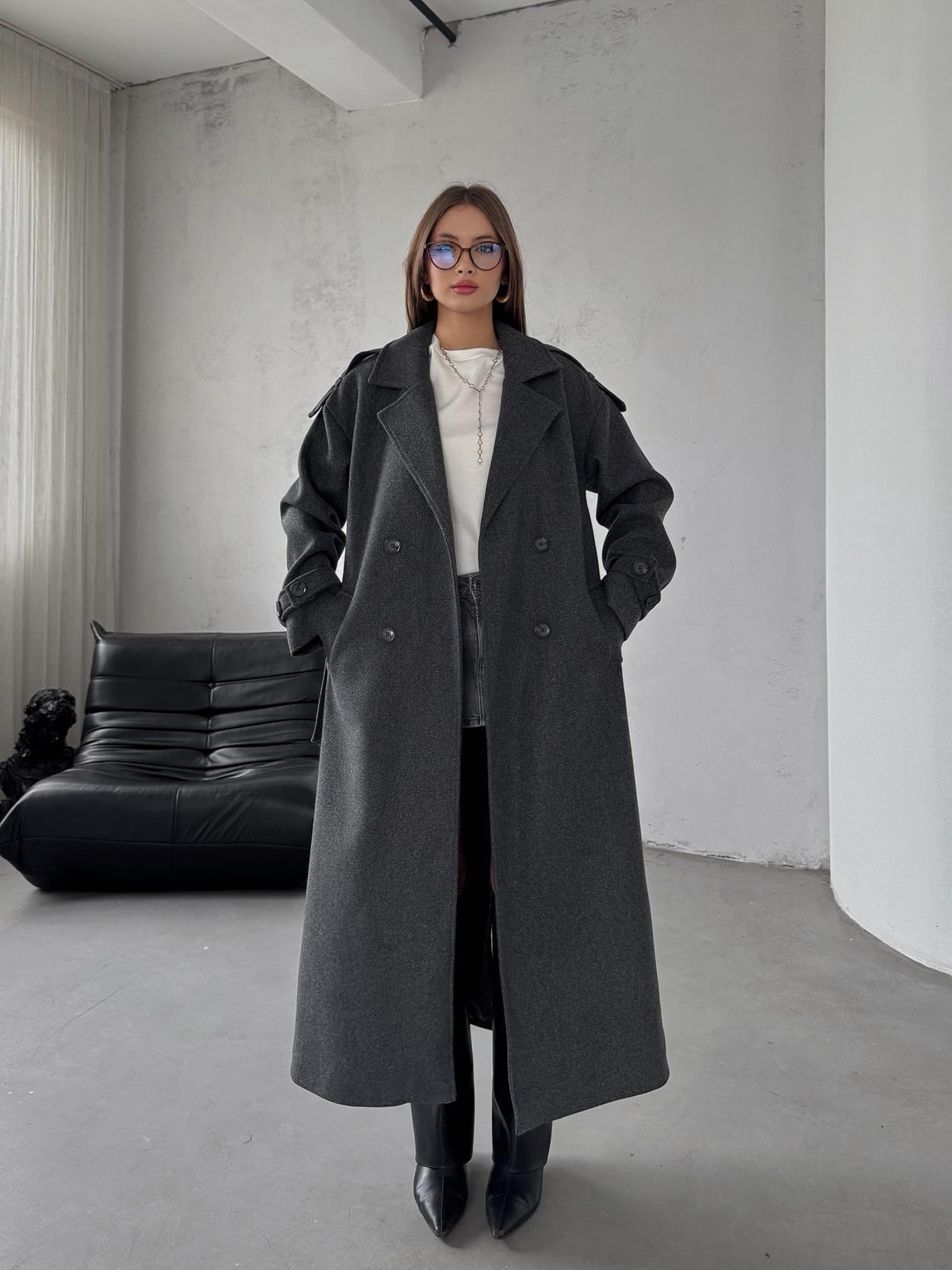 Flurry Premium Antrasit Apoletli Düğme Detay Kaşe Uzun Kaban