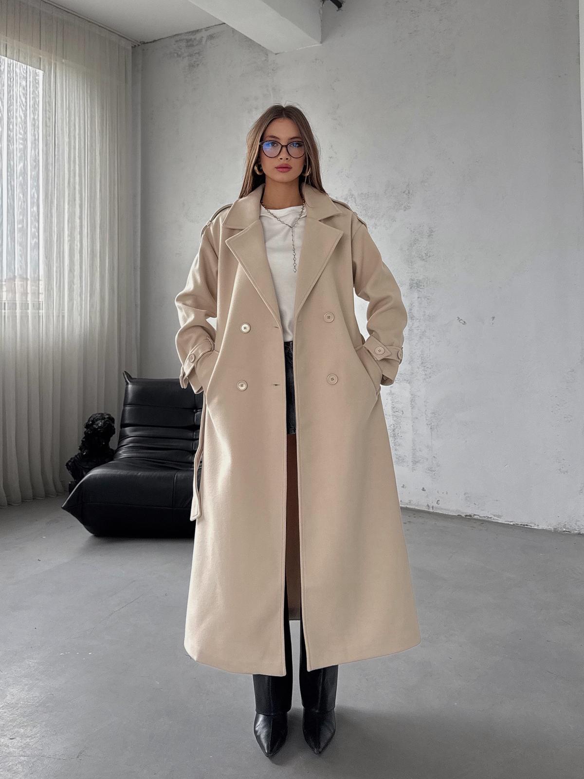 Flurry Premium Bej Apoletli Düğme Detay Kaşe Uzun Kaban