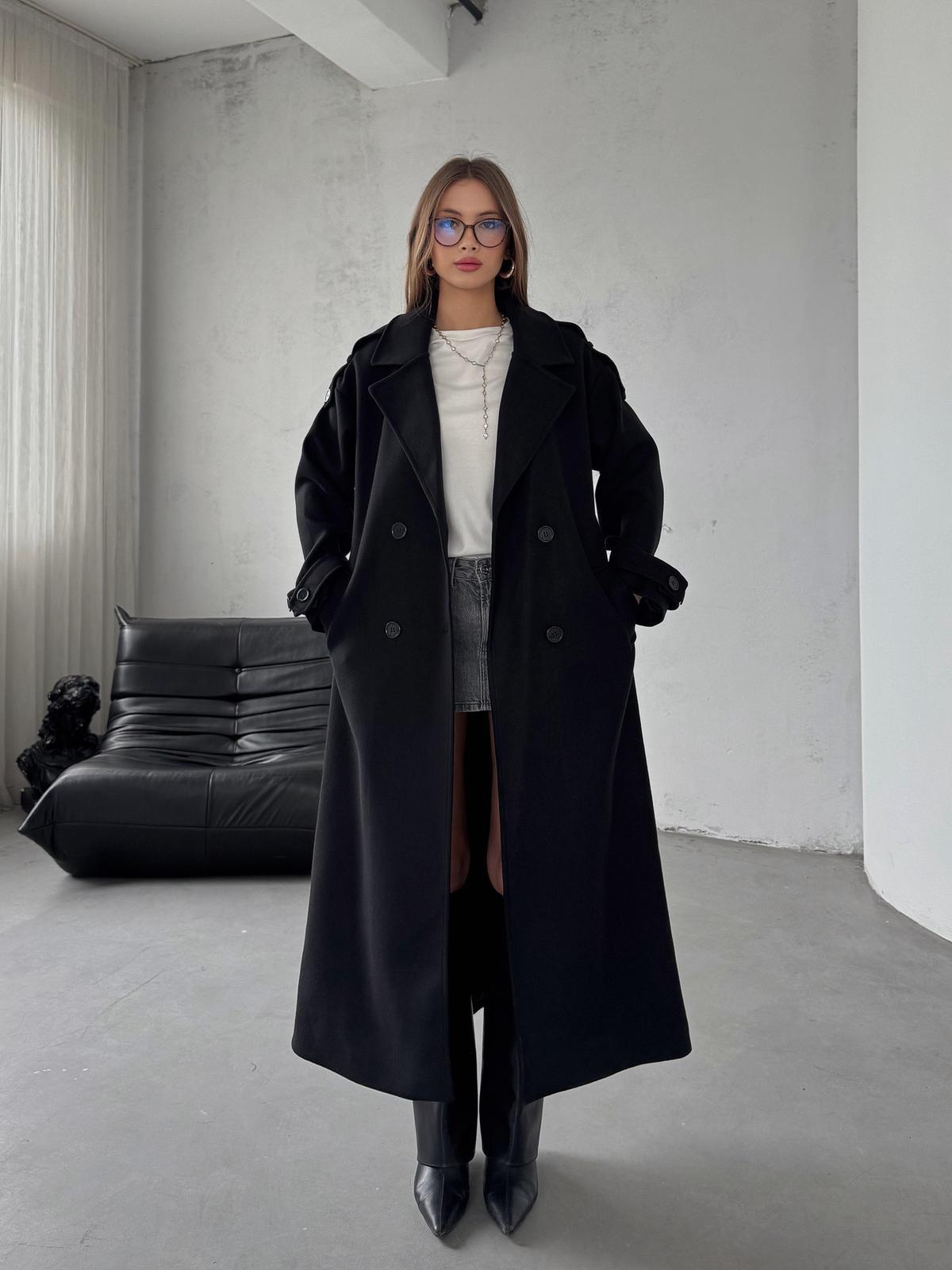 Flurry Premium Siyah Apoletli Düğme Detay Kaşe Uzun Kaban