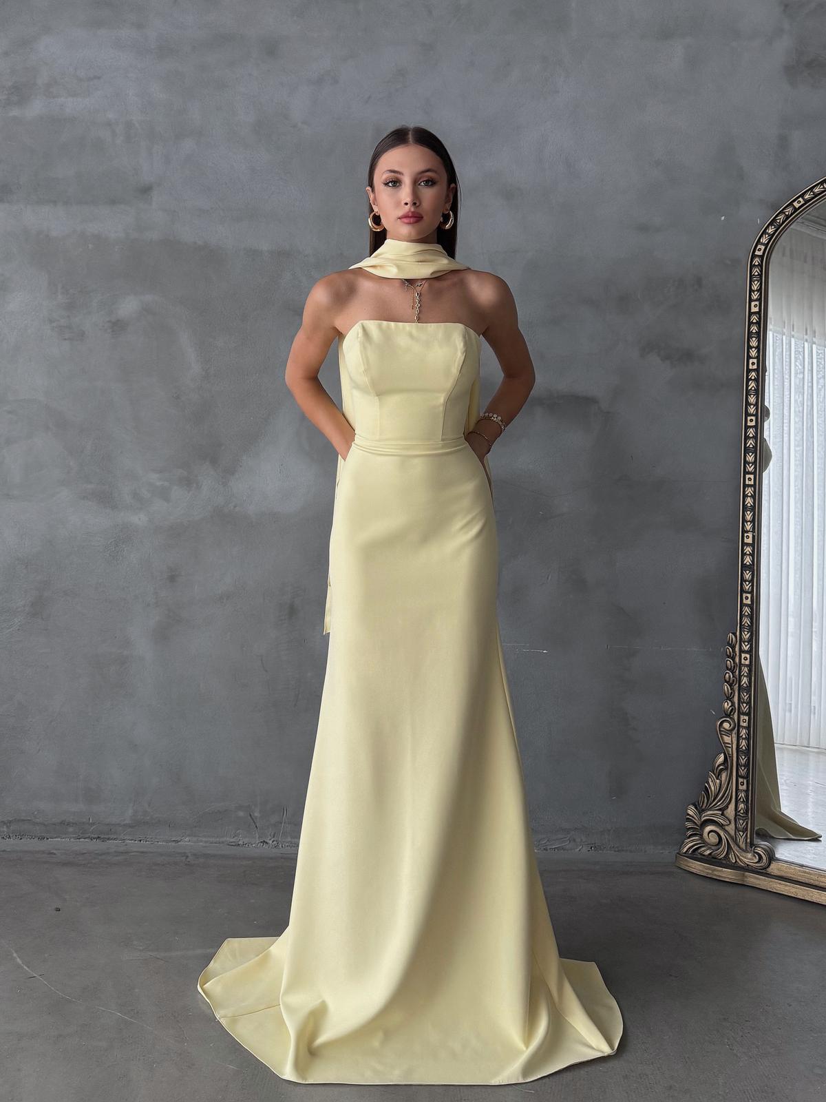 İrelune Straplez Şal Detay Sarı Uzun Abiye