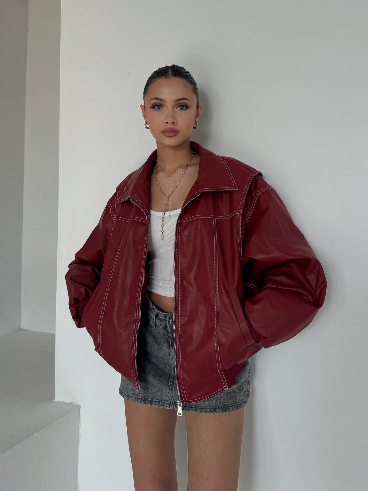 Knox Premium Dikiş Detay Kırmızı Deri Ceket