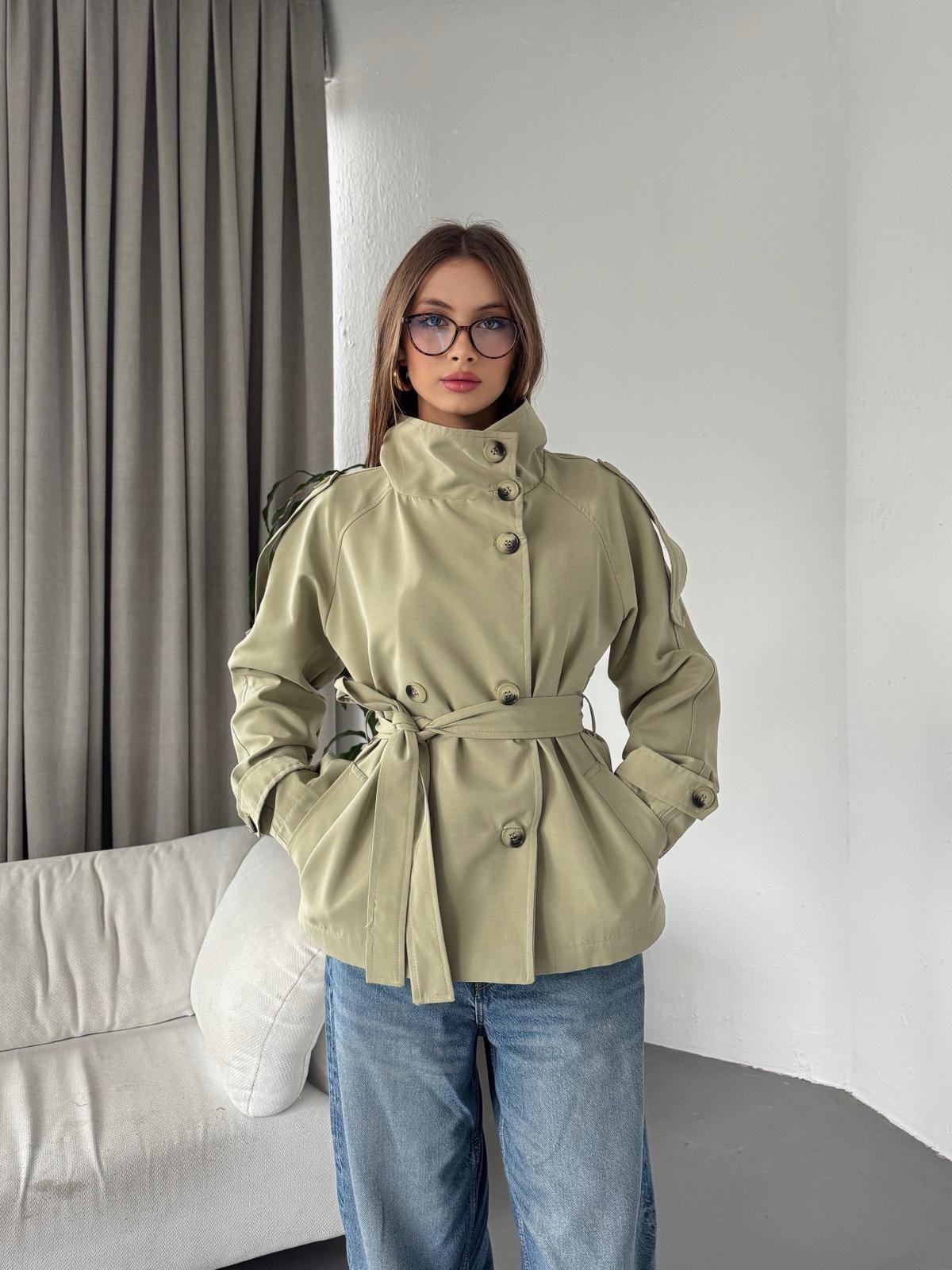 Lorvian Dik Yaka Bağlama Detay Mint Kısa Trençkot