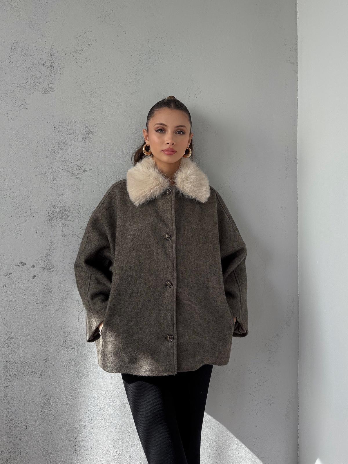 Luvet Yakası Kürk Detay Kısa Vizon Kaşe Ceket