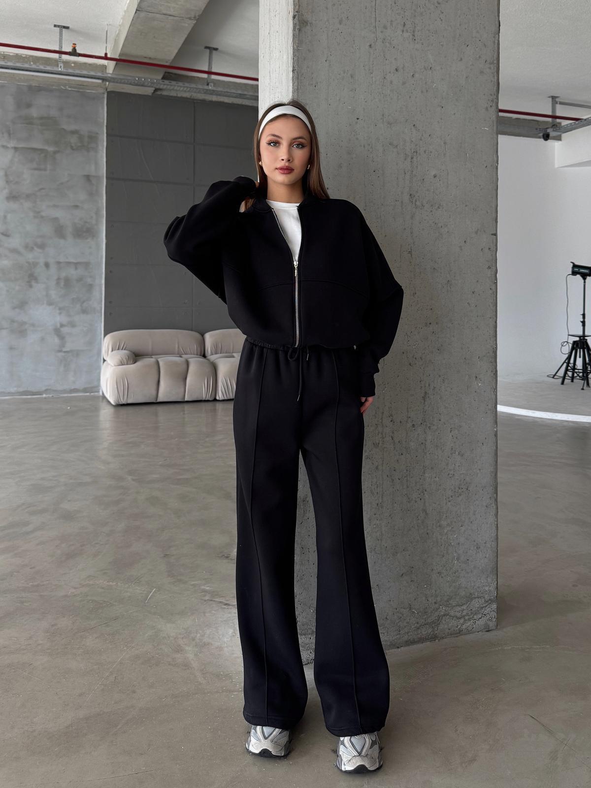 Mars Üç İplik Şardonlu Siyah Eşofman Takımı
