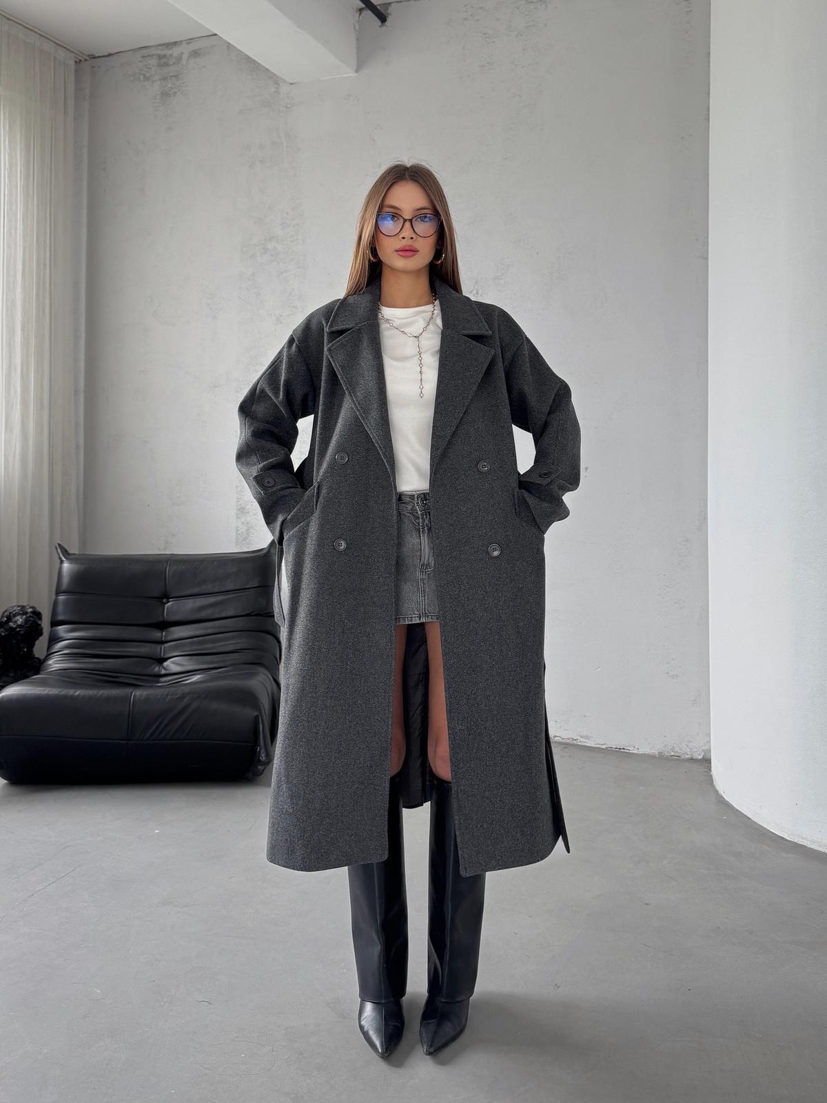 Nimbus Premium Antrasit Düşük Omuz Detay Kaşe Uzun Kaban