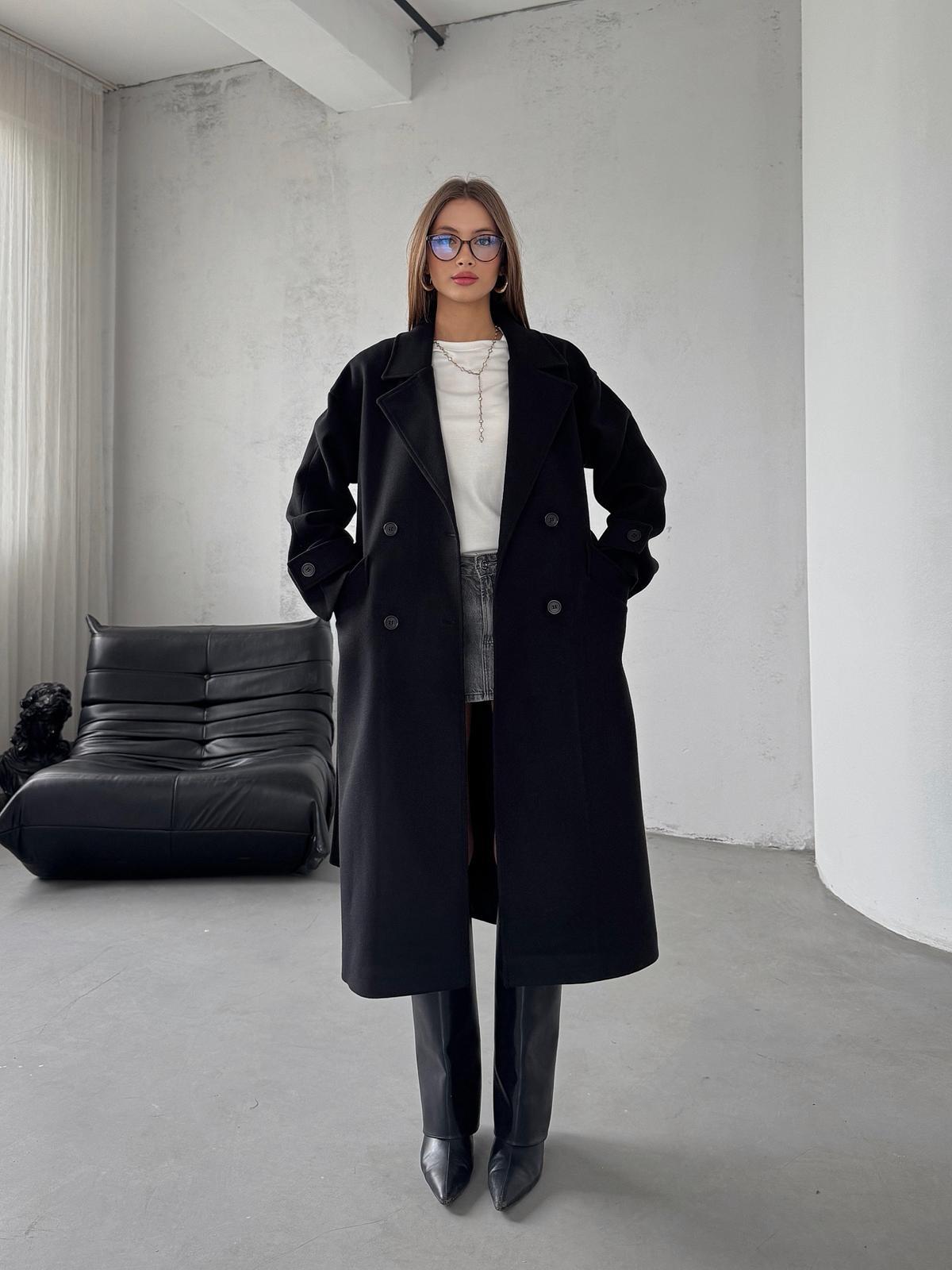 Nimbus Premium Siyah Düşük Omuz Detay Kaşe Uzun Kaban