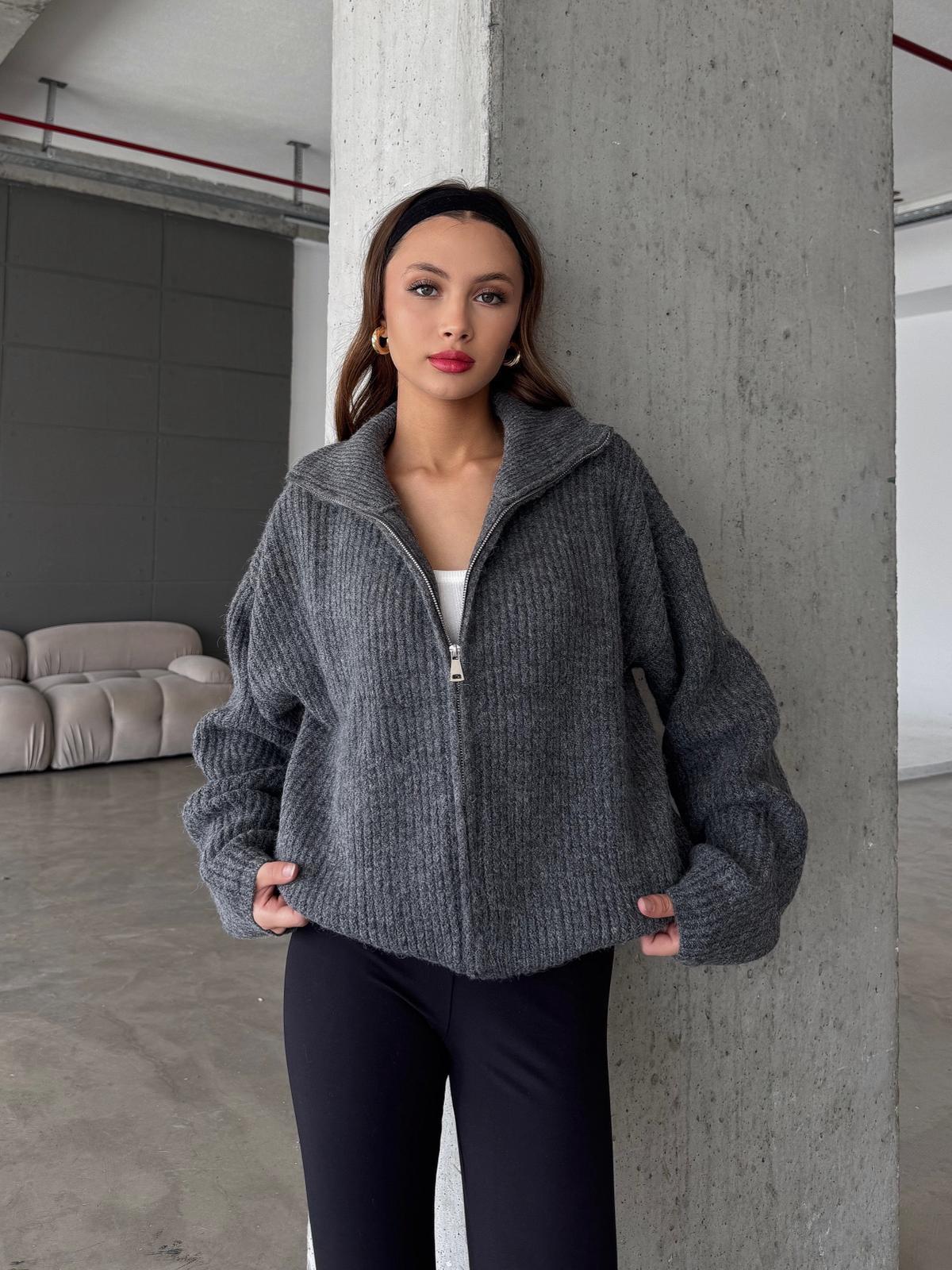 Nuvia Antrasit Çift Fermuarlı Triko Hırka