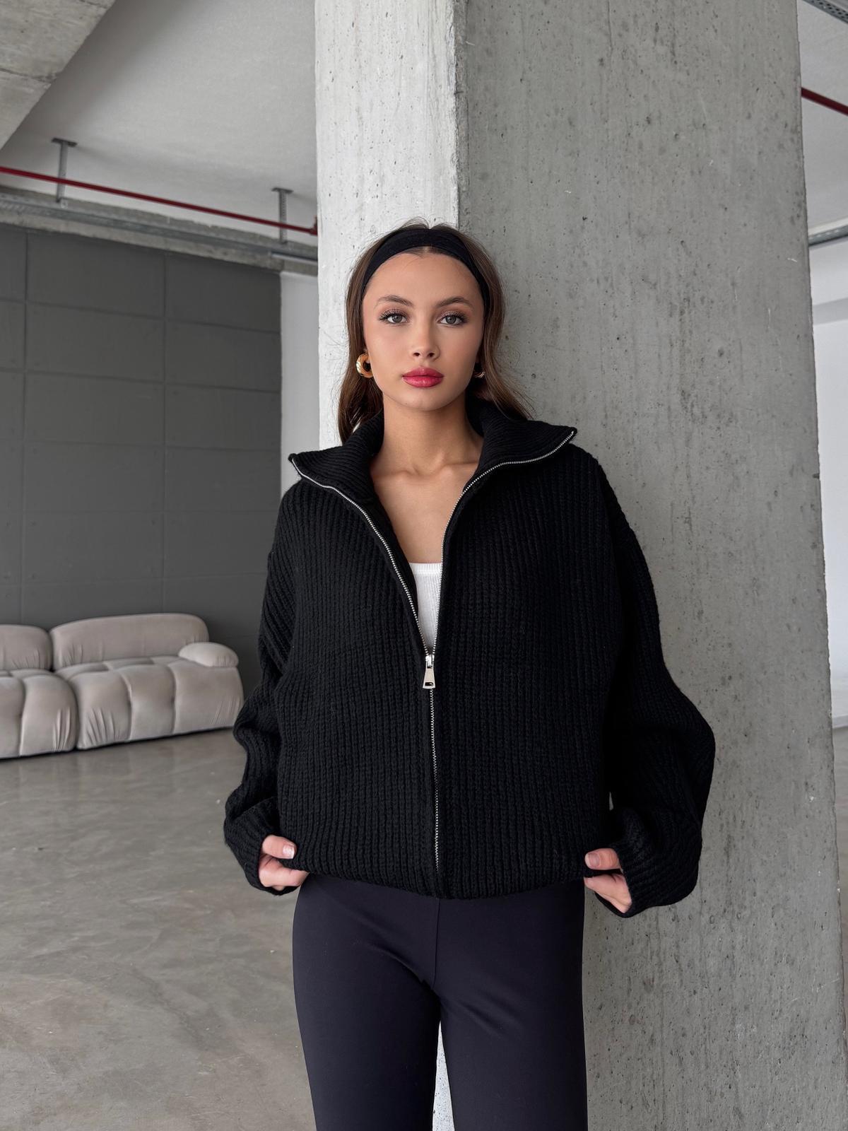 Nuvia Siyah Çift Fermuarlı Triko Hırka