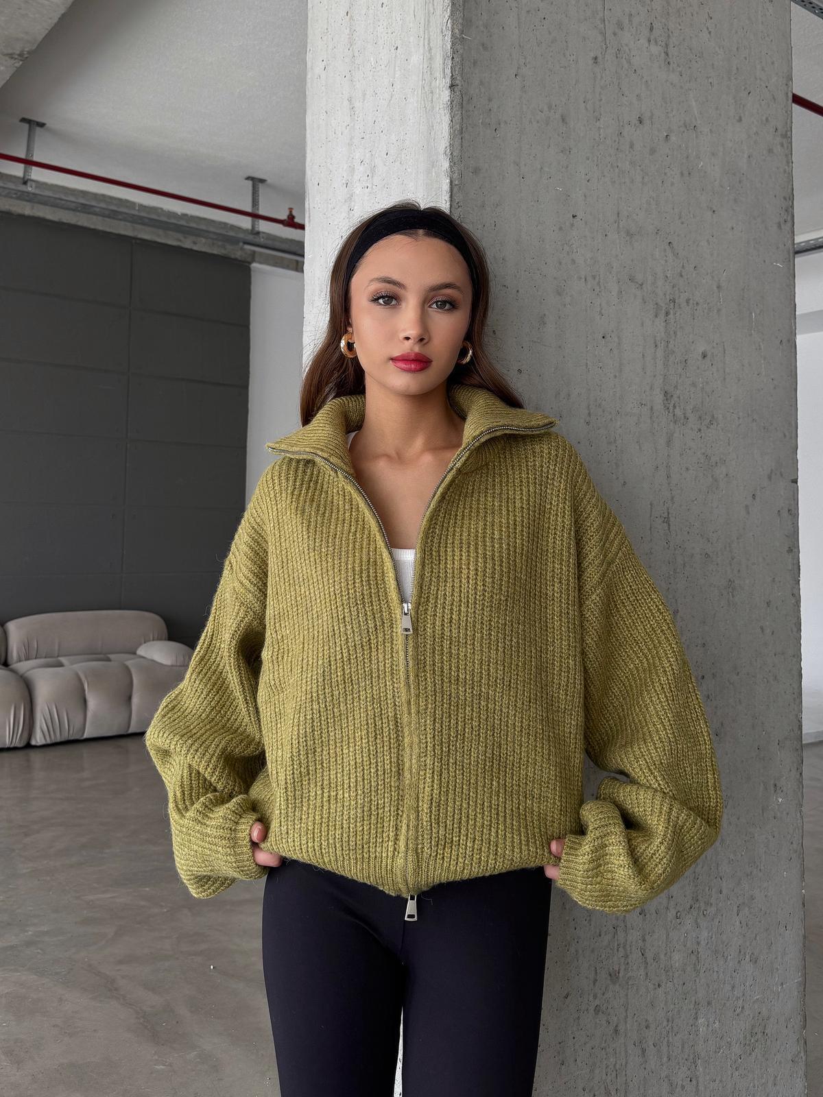 Nuvia Yeşil Çift Fermuarlı Triko Hırka