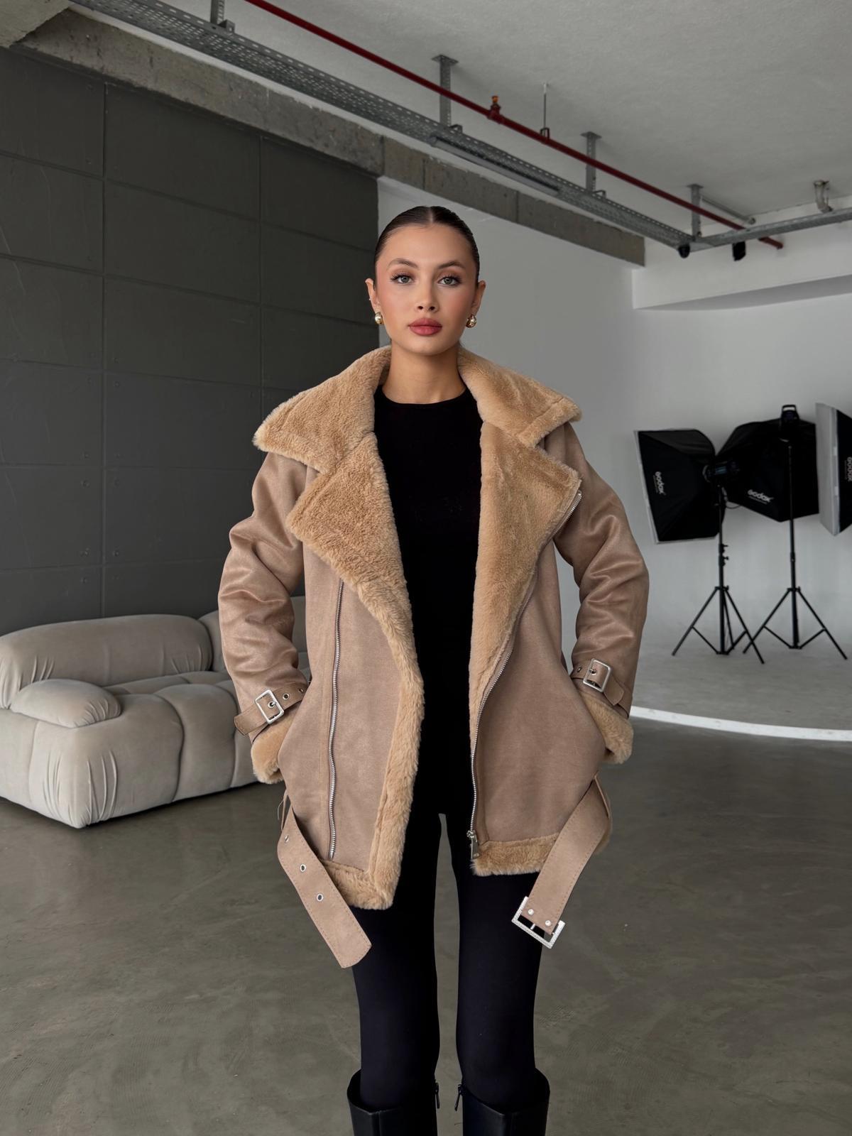 Nuvor Kahve Kürk Detay Nubuk Ceket