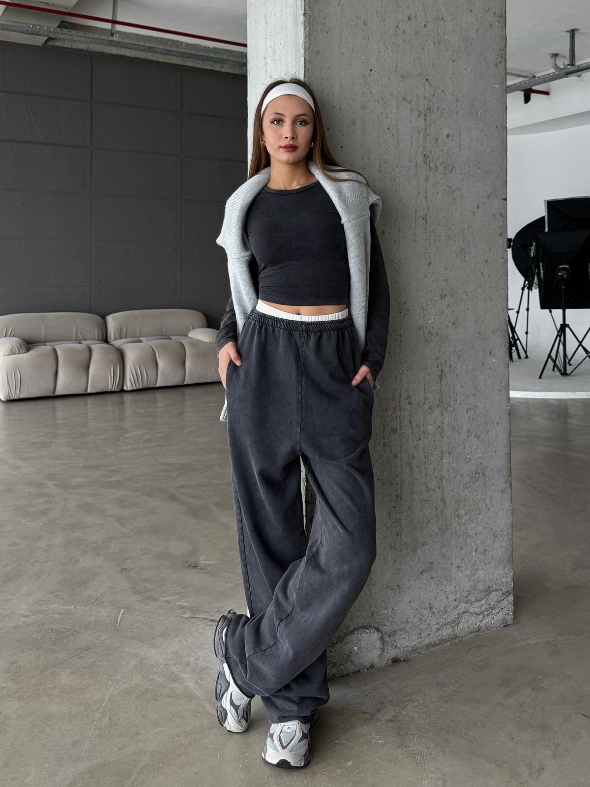 Omarya Yıkamalı Antrasit Bluz Pantolon Takım