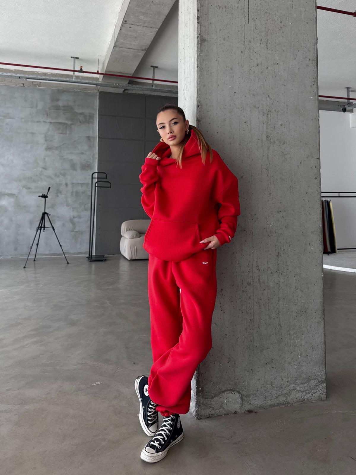 OW Kapüşonlu Oversize Kırmızı Hoodie