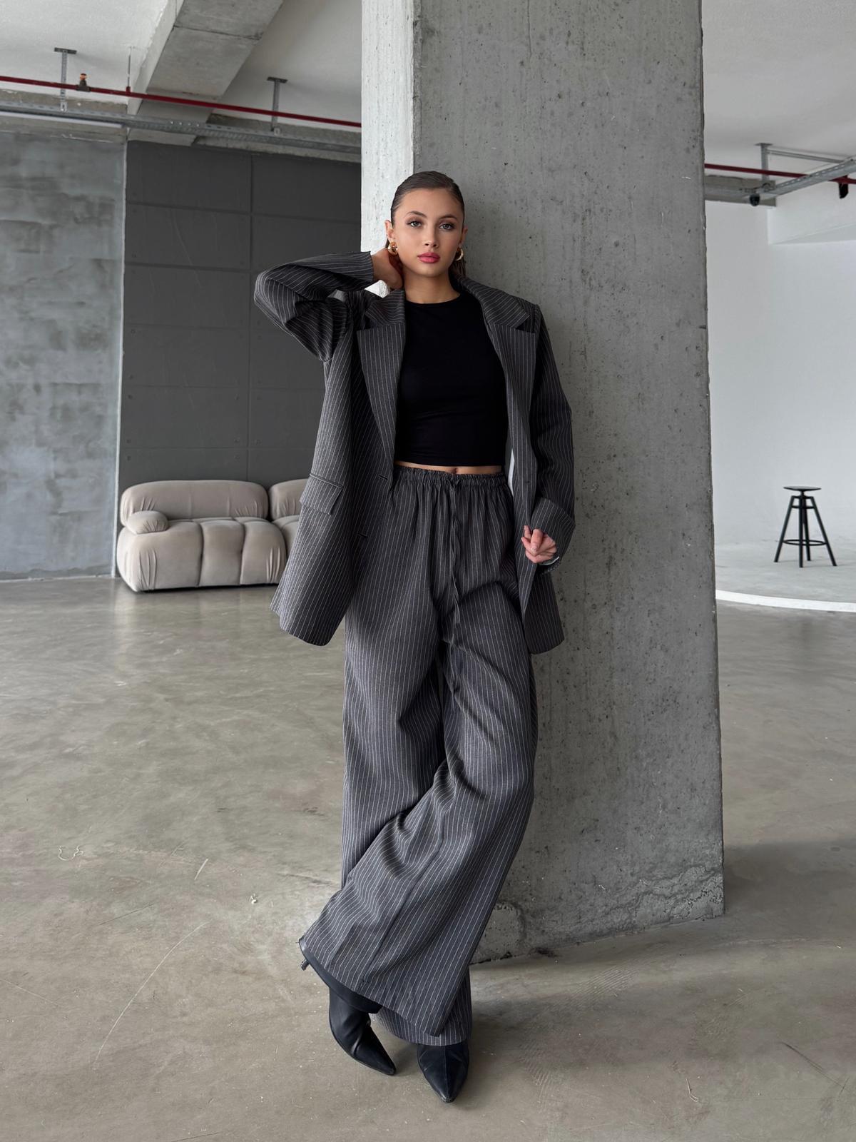 Ulvenor Antrasit Çizgili Düğme Detay Cepli Blazer Takım