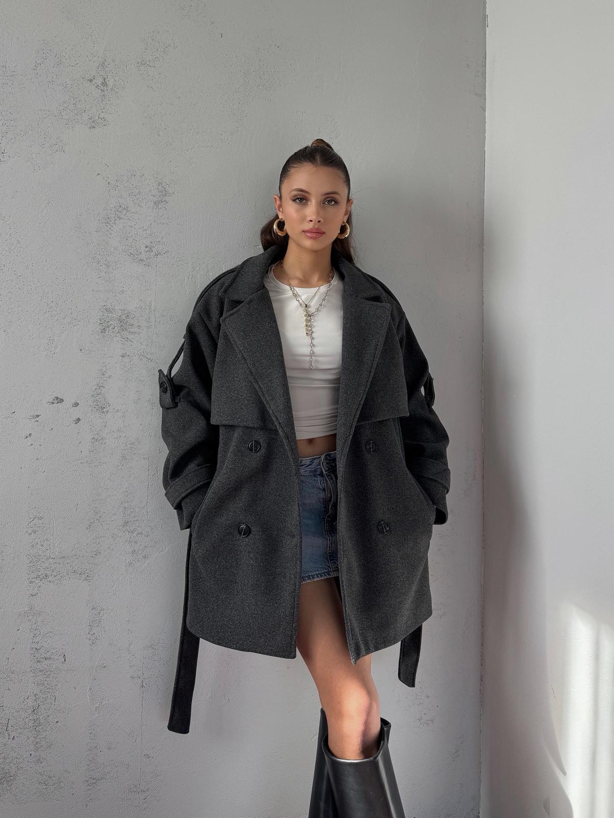 Verris Antrasit Apoletli Oversize Kaşe Kısa Kaban