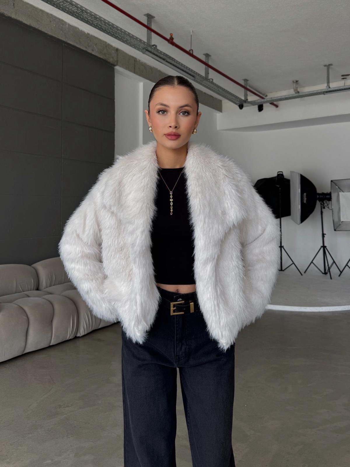 Vestra Şal Yaka Beyaz Kürk Ceket
